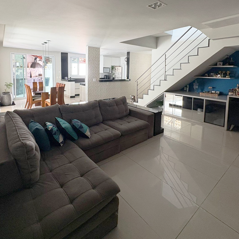 Desfrute de uma ampla sala de estar, cuidadosamente planejada para integrar dois ambientes distintos, ambos equipados com móveis sob medida.
