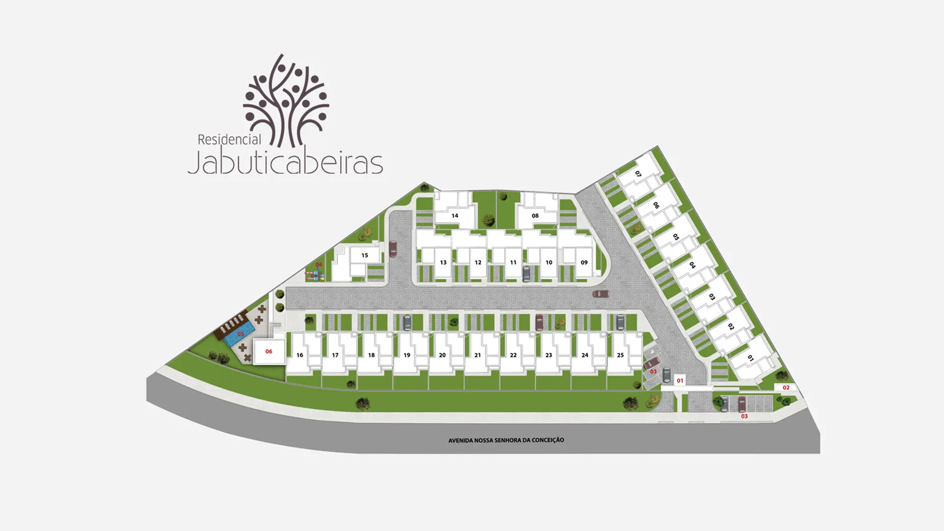 O Condomínio conta com água individualizada, guarita com controle de acesso e estacionamento para visitantes.